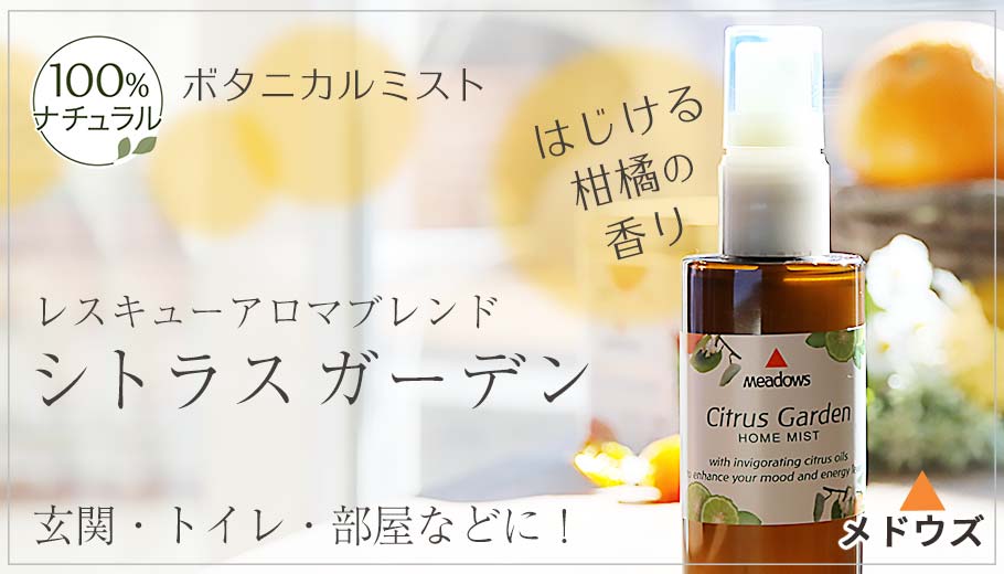 【柑橘の香りでリフレッシュ!】 品質のメドウズが贈る、100%ナチュラルなアロマルームミスト。きつ過ぎず、柔らかすぎないちょうど良い香りで、あなたのいる空間を快適なものに変えてくれます。 おススメの場所 * 消臭効果もあり、トイレや車など臭いのこもりがちな空間のリフレッシュに。 * 柑橘の香りは、キッチンやリビングなど、食べ物のある所にも安心してどうぞ。 * 集中力を高めたいとき。 * イライラしたり、辛い気分を変えたいとき。 * 試験やプレゼンなど。緊張をほぐし、実力を発揮しやすくなります。 【お役立ちリンク】 *その他メドウズ製品