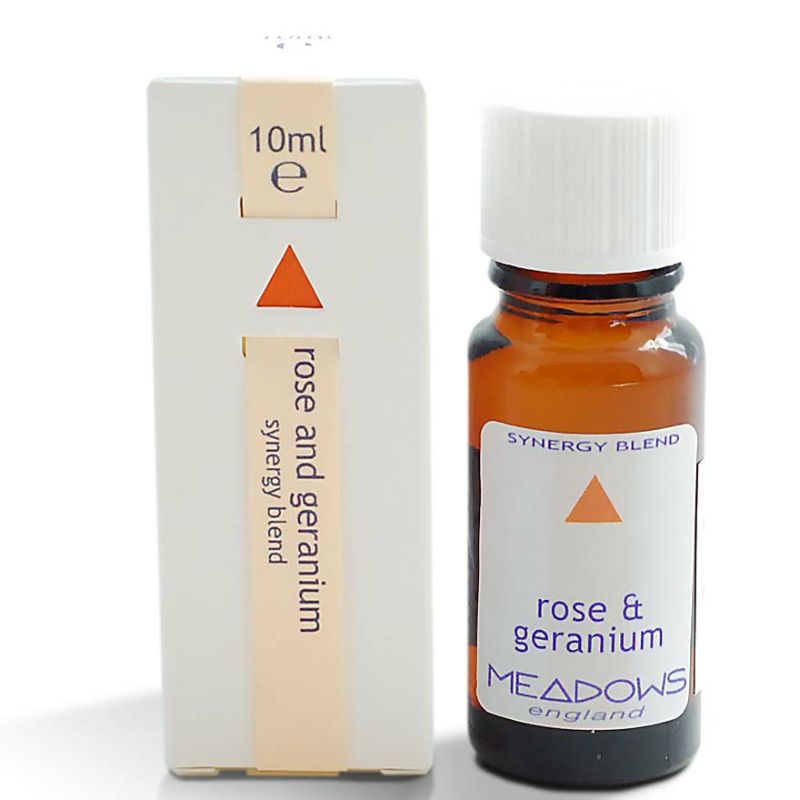 [メドウズ シナジーブレンドシリーズ]は、目的やシチュエーションに合わせてブレンドしたエッセンシャルオイル。その中の[ローズ&ゼラニウム]は、薔薇を中心とした優雅で心地よい香りのブレンドオイルです。