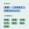 オウバク末、モモ葉エキス、トウキエキス-1、センキュウエキス、トウヒエキス、チンピエキス、ゴマ油、リボフラビン、硫酸Mg、乾燥硫酸Na、無水ケイ酸、香料 |