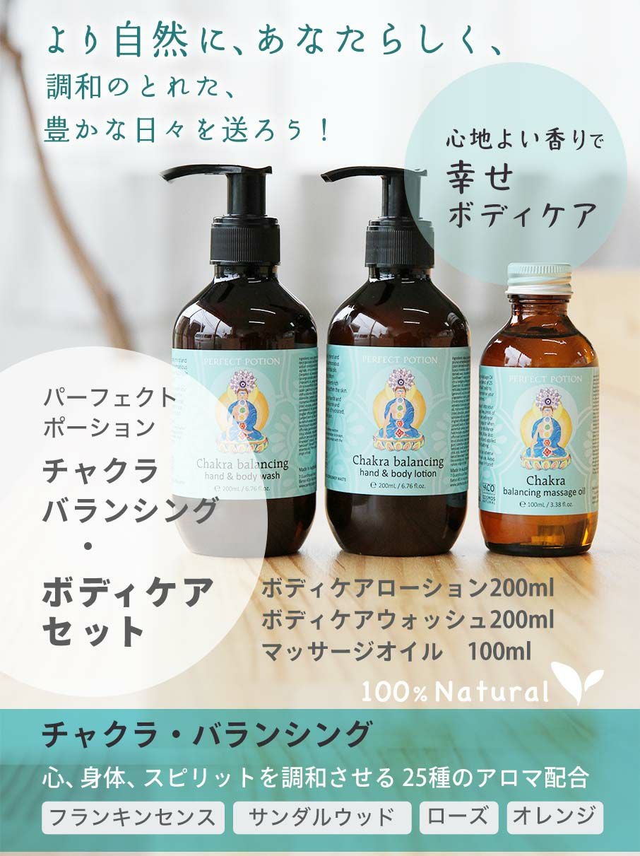 他の画像を見る 全身ヒーリングアロマでスキンケアできちゃうお得セット バランシング ボディケアセット パーフェクトポーション 販売価格 ¥ 12,870 税込 在庫切れ 詳細を見る お気に入りに登録する